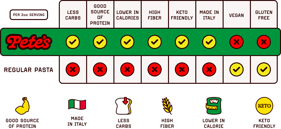 A great reinvention. Their keto pasta fuels my physical performance and it tastes super. I've tried a number of fake pastas and Pete's is a game changer. I honestly couldn't believe that it's actually pasta.